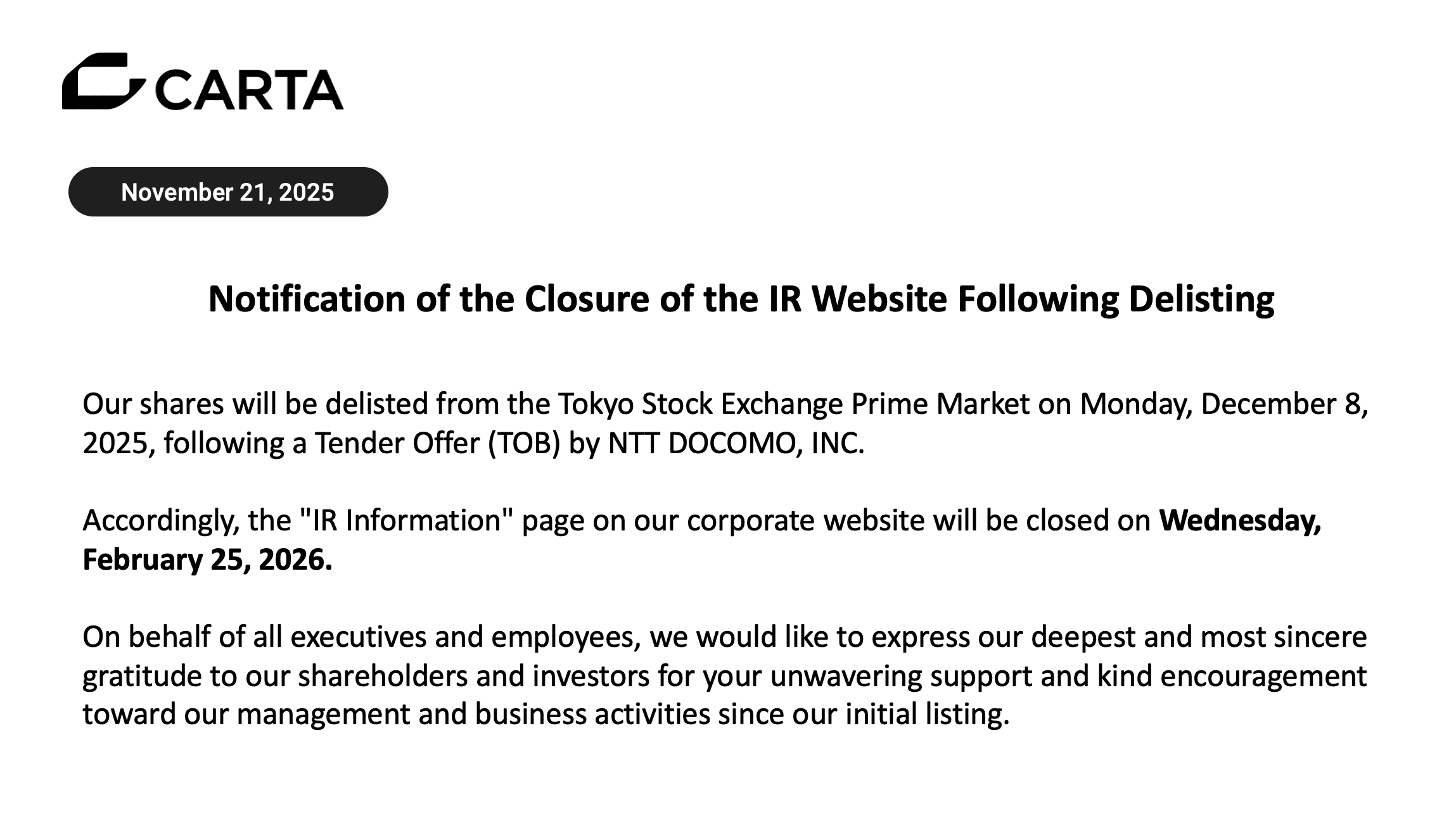 CARTA HOLDINGS, INC.
