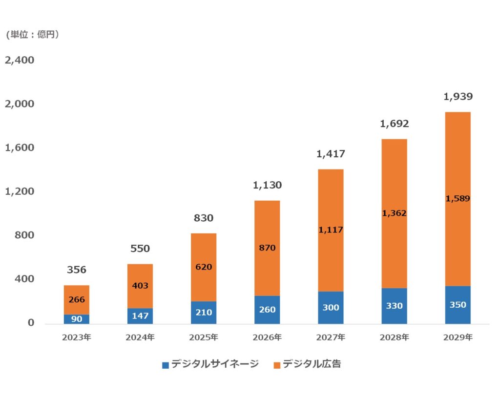 またその内訳は、デジタル広告が620億円、デジタルサイネージが210億円です。今後も、リテールメディア事業を支えるテクノロジーの進展が多くの店舗事業者の参入を後押しし、広告主による継続的な需要の高まりのもと、2029年には2025年比約2.3倍の1,939億円に達すると予測されます。