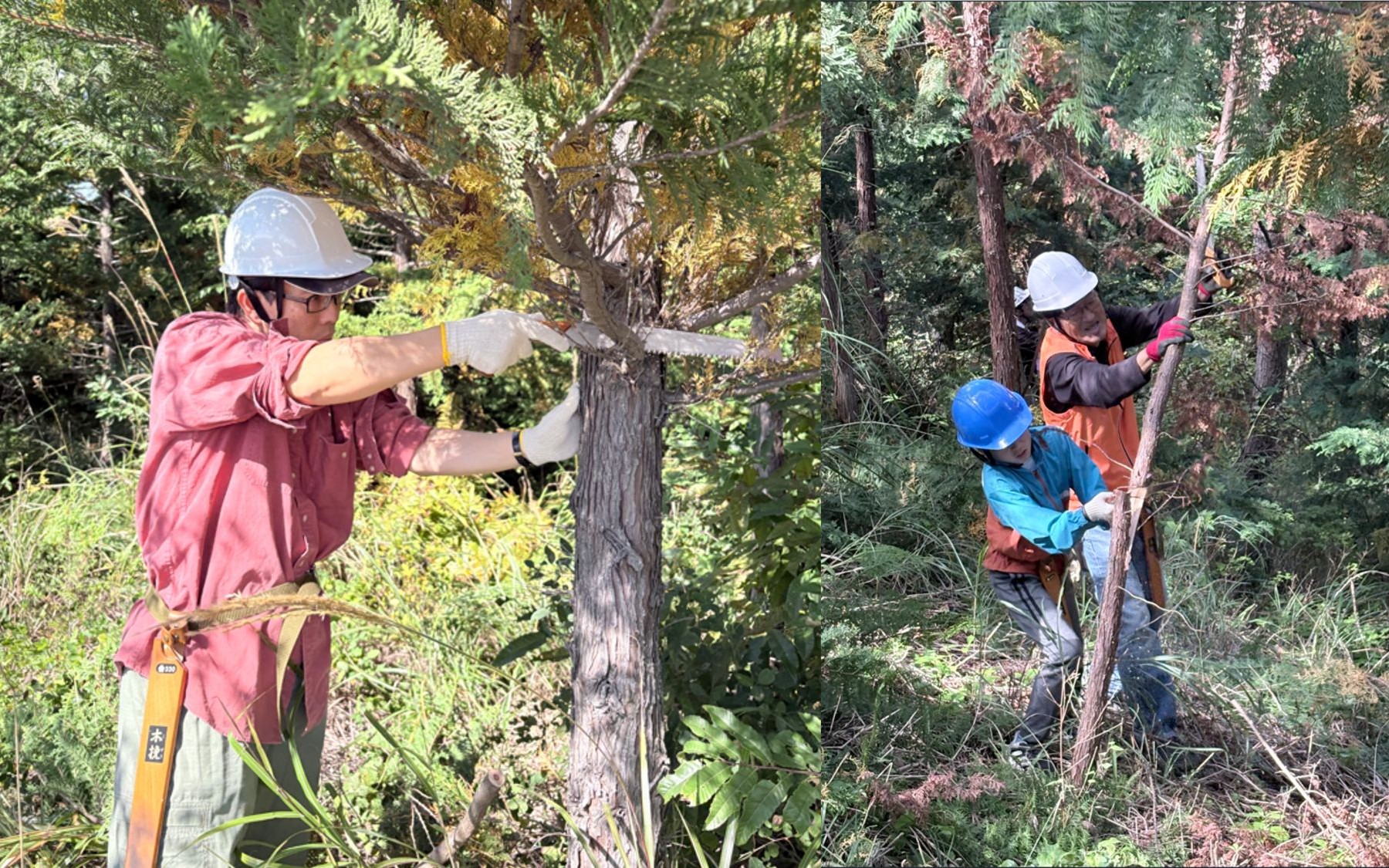 参加した社員、ご家族で、ノコギリを使い、生い茂った枝を1本1本丁寧に切っていきました。