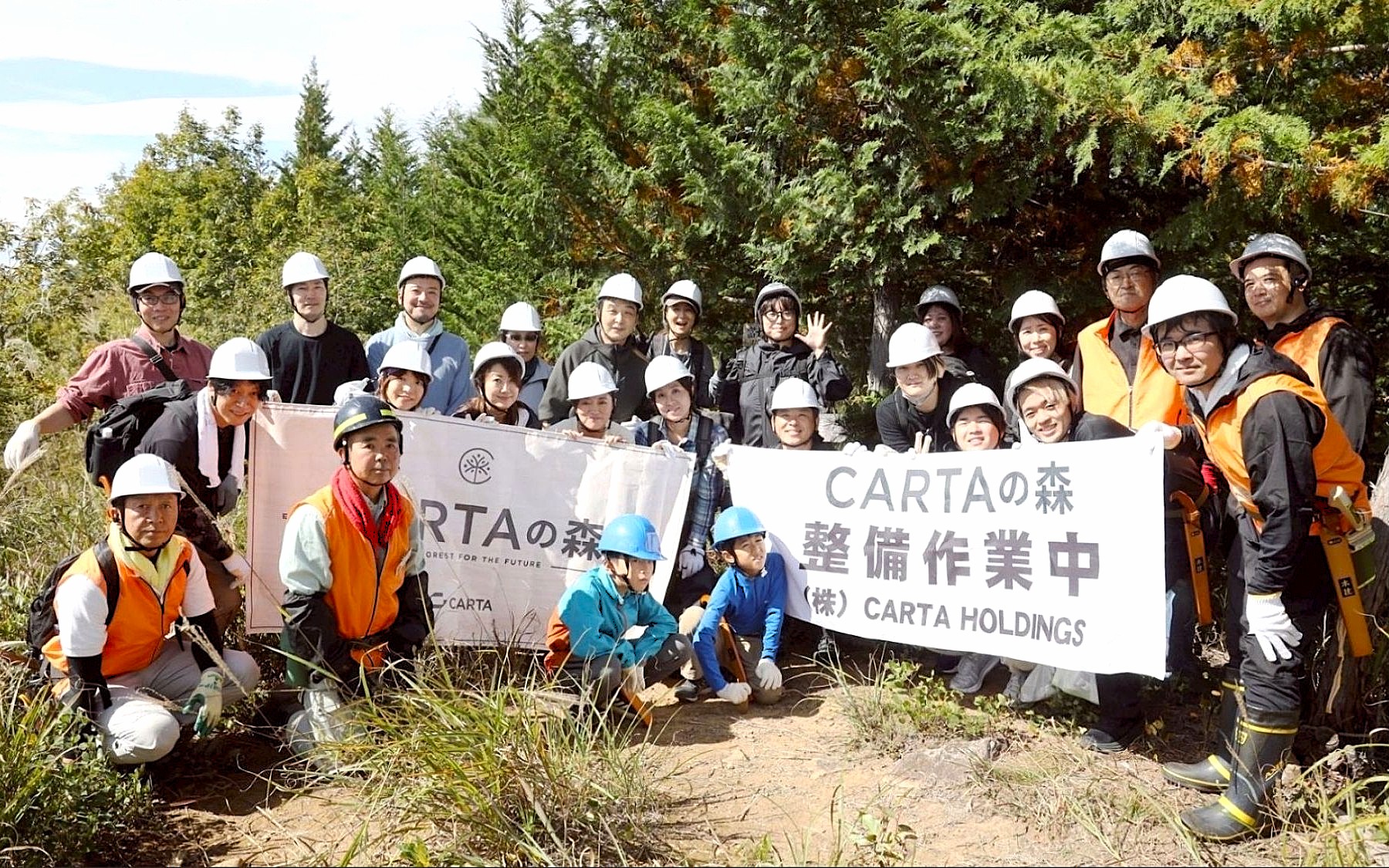 今回の活動を通じて、豊かな自然を守るためには、継続的な人の手による整備が不可欠であること、また、地域の課題や魅力を深く知ることができました。CARTA HOLDINGSは、今後も「CARTAの森」における活動を継続し、森林保全と地域社会への貢献に努めてまいります。